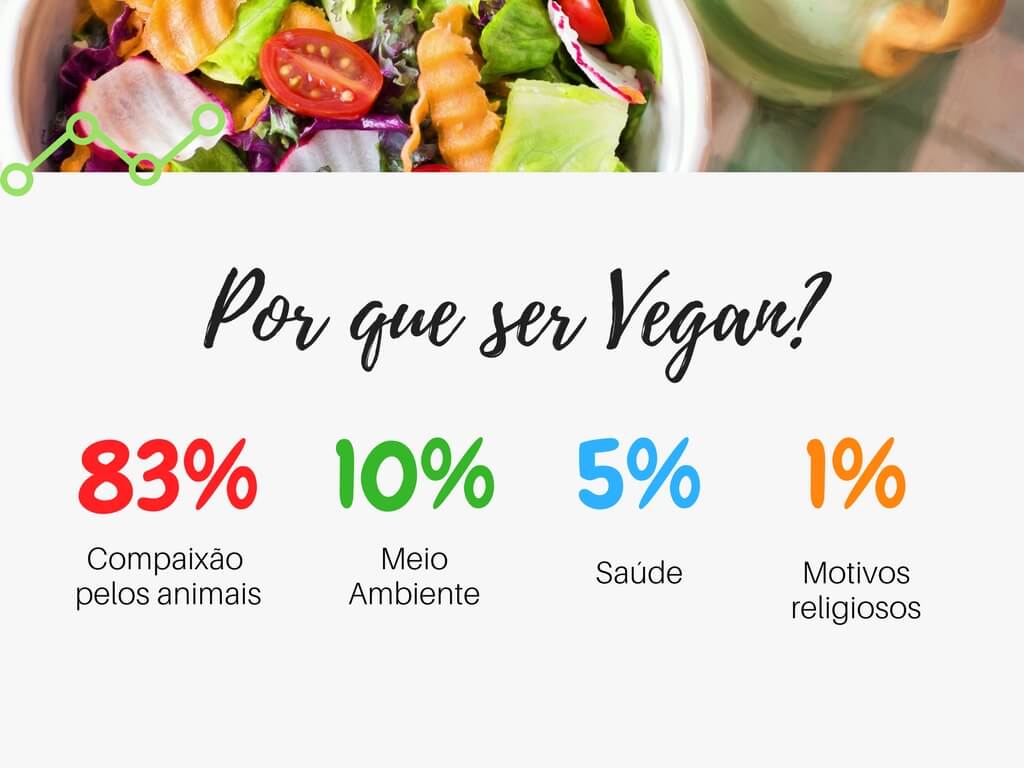 Vegetariano há 5 anos, Raphael Silva, 31 anos, era o primeiro a perguntar quando seria o próximo churrasco no grupo de amigos. “Agora, pensando nisso, se alguém vier a mim e dizer que nunca podem se tornar veganos, sinto que sou a prova viva de que qualquer um pode abrir os olhos em um momento em suas vidas e fazer a escolha certa”. Assim como milhares de pessoas que aderem à dieta, a maior motivação para se tornar vegetariano foi pelos direitos dos animais. Com o tempo outros motivos surgiram, como a preocupação com a devastação ambiental causada pela indústria da carne. São muitos os motivos que levam milhares de pessoas a se tornarem vegetarianas. Em uma enquete online realizada com 395 vegetarianos, a grande maioria disse ter se juntado ao lado verde da força por compaixão aos animais. Outros aspectos que motivaram os vegetarianos foram meio ambiente, religião e saúde. Confira os resultados da enquete no infográfico abaixo:
