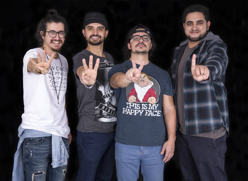 Grupo de Stand Up Comedy – 4 Amigos (Afonso Padilha, Thiago Ventura, Márcio Donato e Dihh Lopes – Foto: Divulgação)