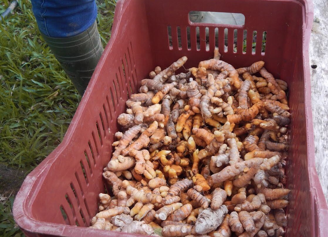 Rizoma do açafrão-da-terra colhido no sítio de Noeli. Foto: Samuel Palandi.