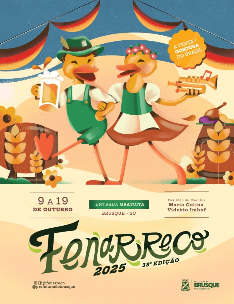 Entre marrecos recheados, danças típicas e desfiles, a Fenarreco segue firme, misturando passado e presente, tradição e inovação — celebrando, a cada nova edição, o orgulho de ser brusquense.