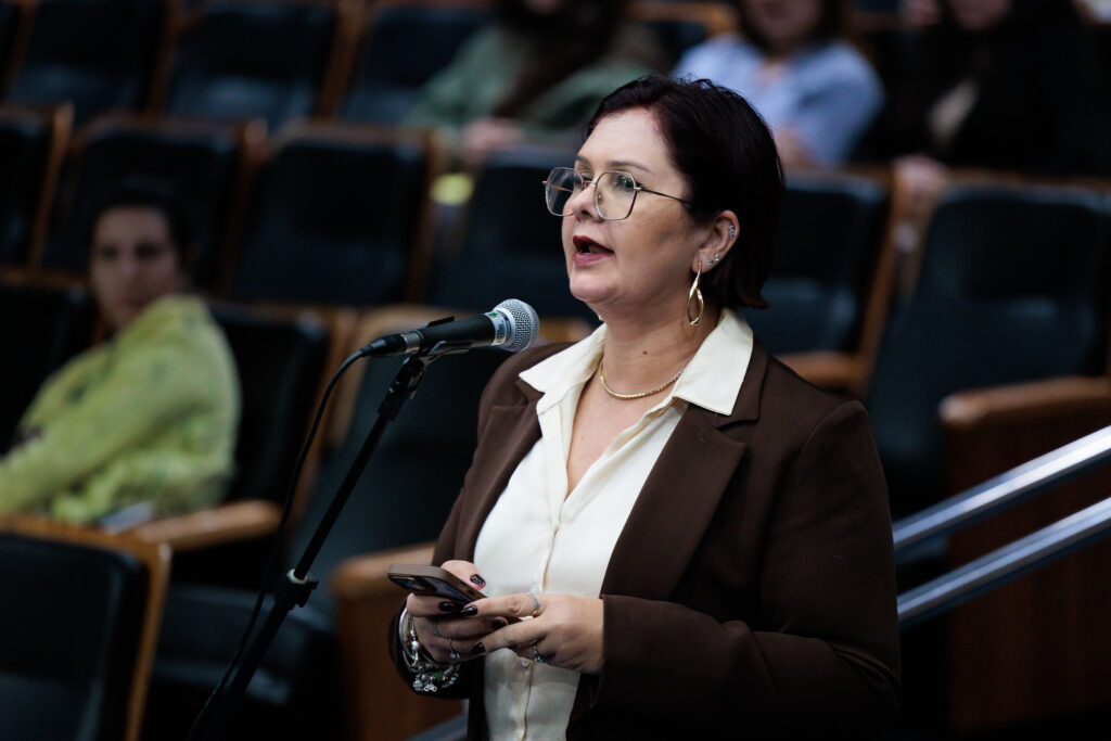 Merilin, protetora independente na audiência pública do dia 03 de novembro de 2025. Foto: Davi Spuldaro/CVI.