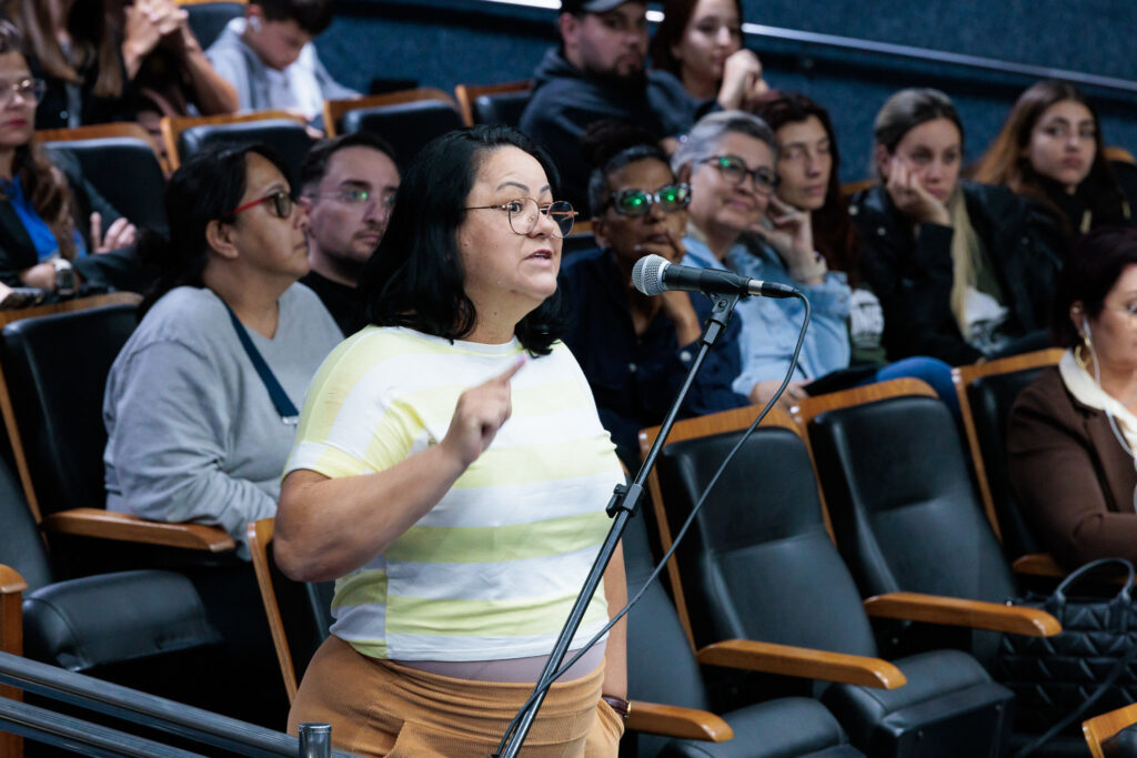 Joice, protetora independente na audiência pública do dia 03 de novembro de 2025. Foto: Davi Spuldaro/CVI.