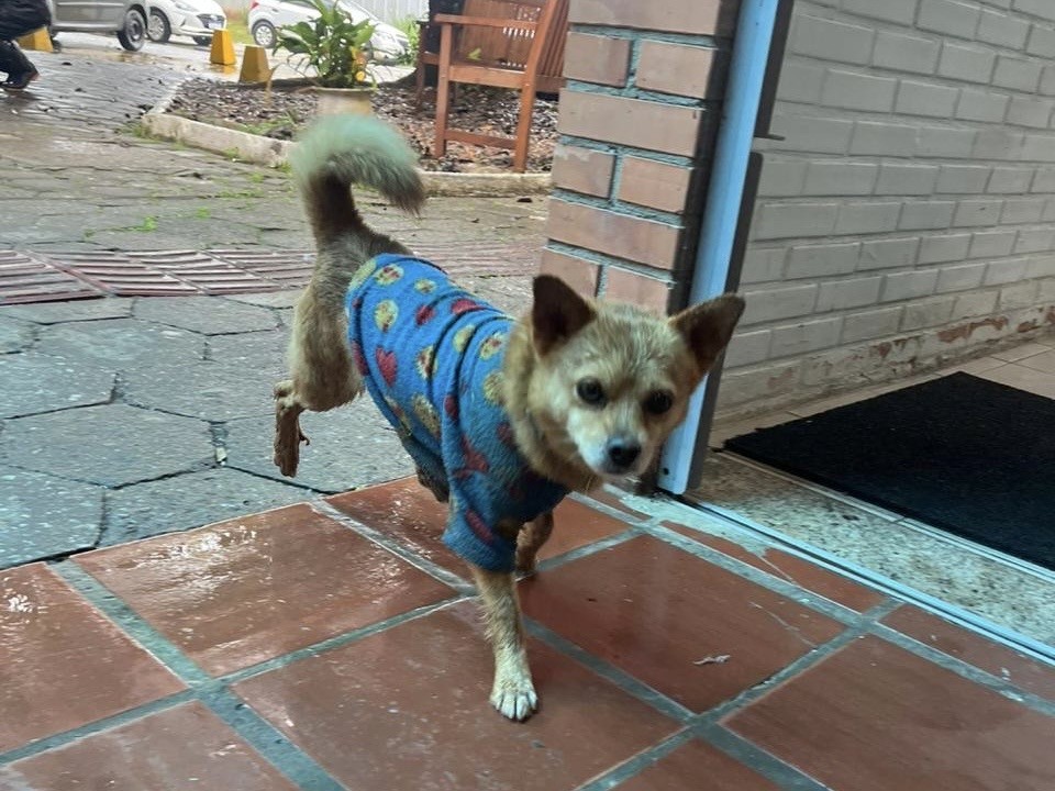 Era uma sexta-feira chuvosa de julho, em pleno período de férias na Univali, quando um cachorro pequeno apareceu nos corredores quase vazios da universidade. Encharcado, tremendo e com a roupinha colada ao corpo, ele parecia triste, desorientado e sem direção. Funcionárias da secretaria o acolheram, retiraram a roupa molhada e o acomodaram em uma sala aquecida, onde pudesse se recuperar.