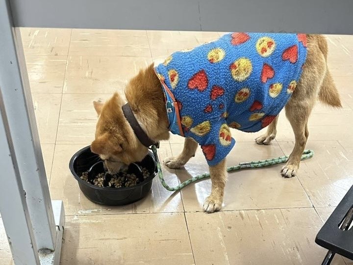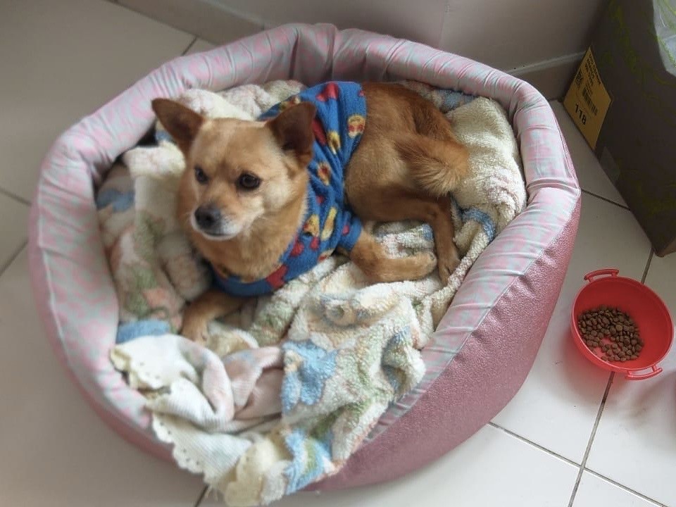 Funcionárias acolhem o cachorro, retiram a roupinha, secam ele e o mantêm em uma sala enquanto voluntários começam a pedir ajuda.