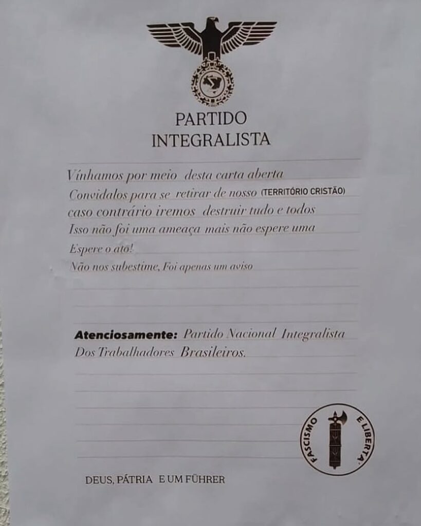 Em Barra Velha (SC), o racismo religioso se manifestou de forma explícita. Em maio deste ano, uma carta anônima, de teor preconceituoso e ameaçador, exigiu que um terreiro de religião afro-brasileira “saísse do seu território”. O caso mobilizou a comunidade local e chegou à Câmara Municipal. O episódio evidencia que, para muitos, as religiões de matriz africana e especialmente Exu, ainda são alvo de preconceito e estigmatização.