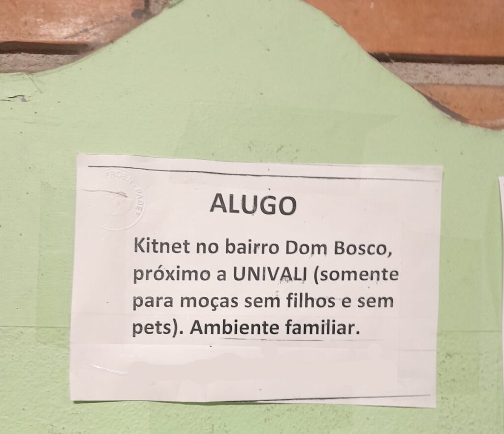 Anúncio exposto nos corredores da universidade restringe a locação a mulheres sem filhos e sem pets