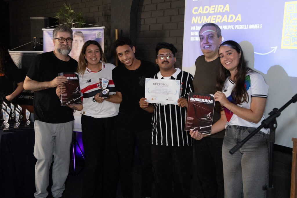 A publicação dá sequência à revista Arquibancada, desenvolvida pelos estudantes formados em 2025, mantendo a proposta original, mas com uma nova identidade. “A gente pensou a Cadeira Numerada como uma continuidade da Arquibancada, mas com identidade própria dentro do universo esportivo”, explica Érika Guckert, integrante da equipe.